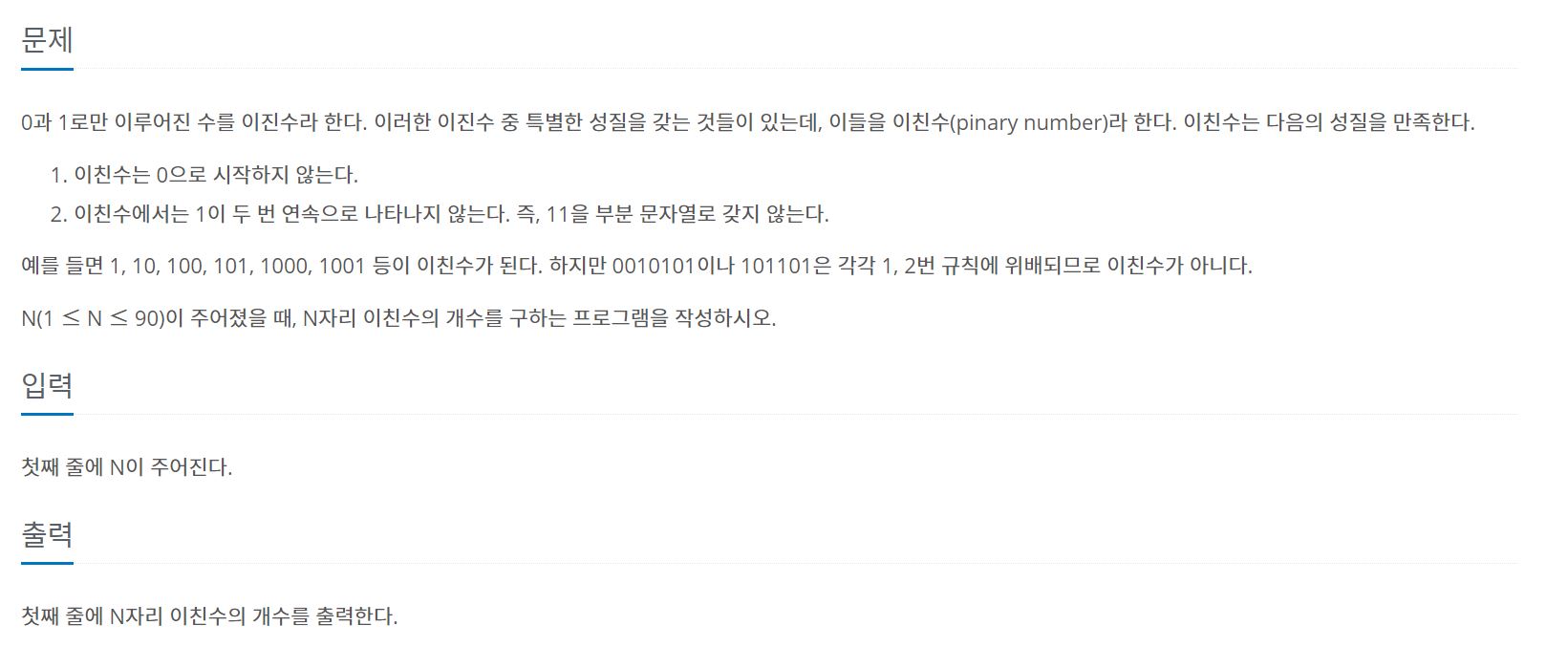 dp[i][j] : i번째 자리가 j일 때 이친수 개수