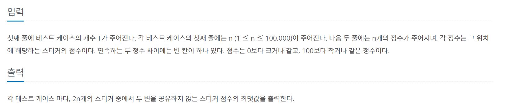 (c++)백준 9465번: 스티커 본문