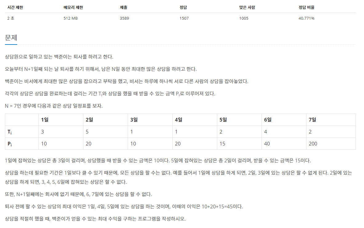15486번: 퇴사 2