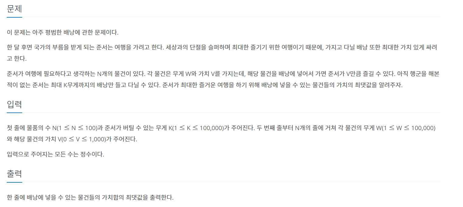 12865번: 평범한 배낭