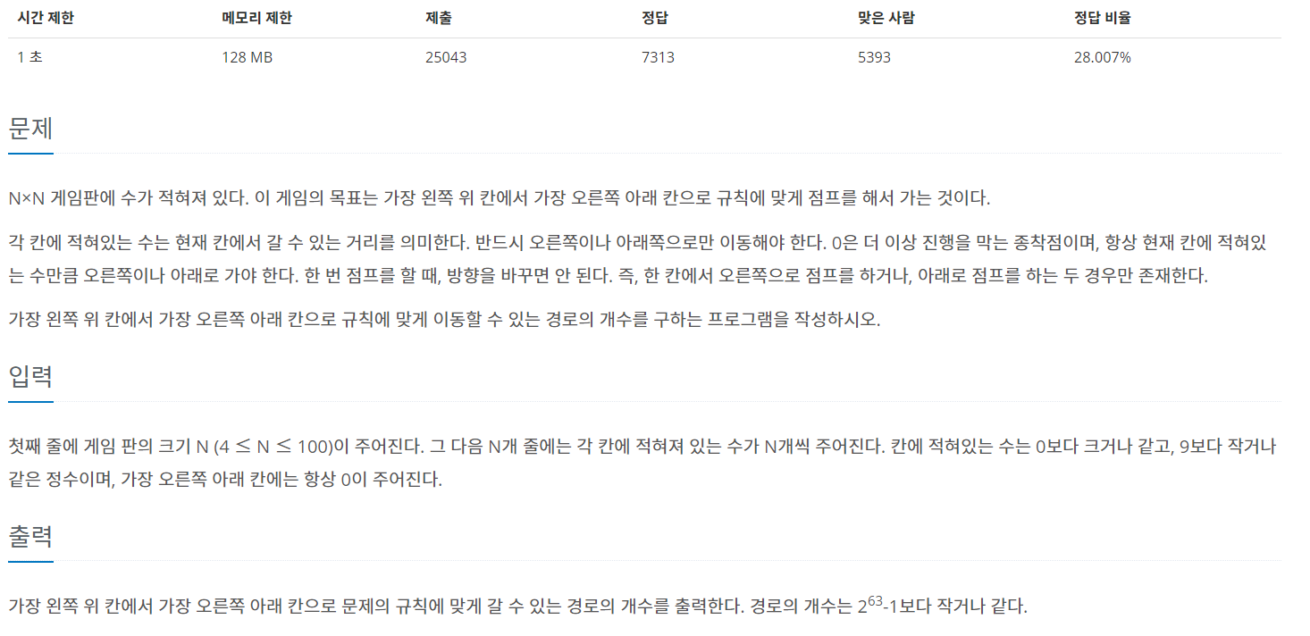 if(j+Board[i][j]>N) : DP[i][j+Board[i][j]] = DP[i][j+Board[i][j]] + DP[i][j]