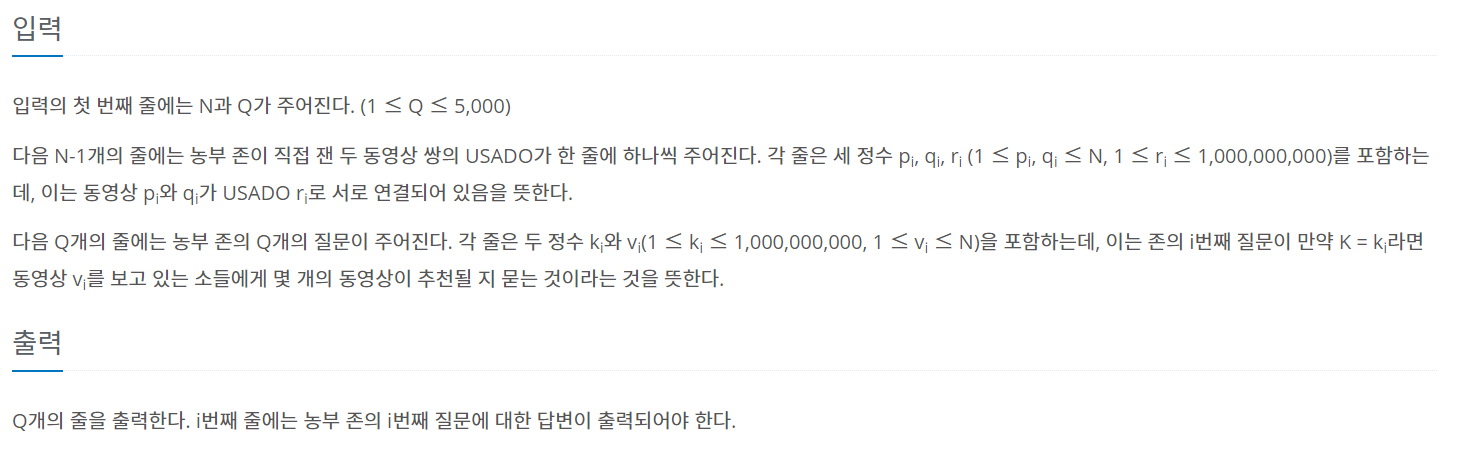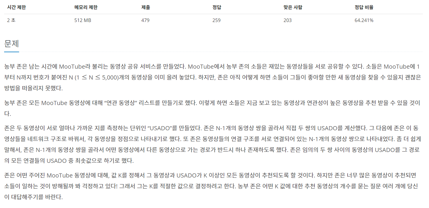 15591번: MooTube (Silver)