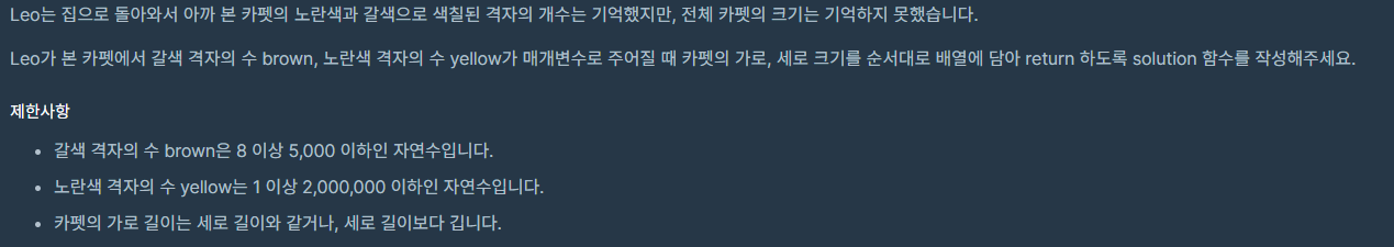 코딩테스트 연습 - 카펫