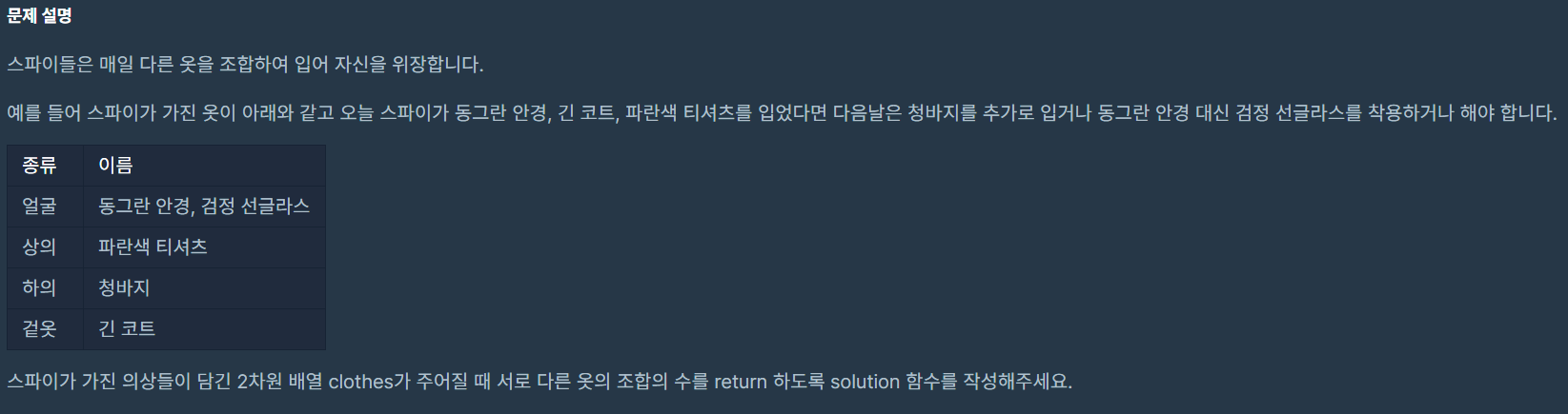 코딩테스트 연습 - 위장