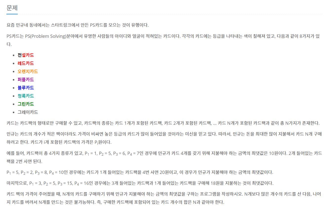 dp[i] : i개 카드 구매 위해 민규가 지불해야 하는 금액의 최댓값