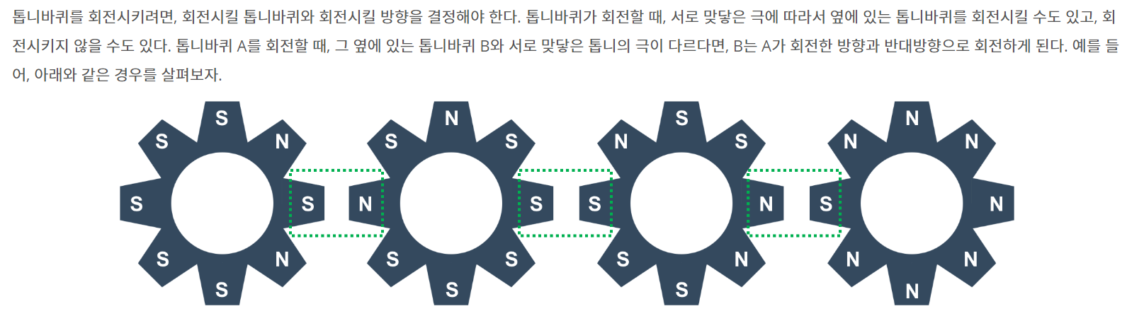 //양쪽 톱니바퀴의 맞닿은 부분이 다른극이면