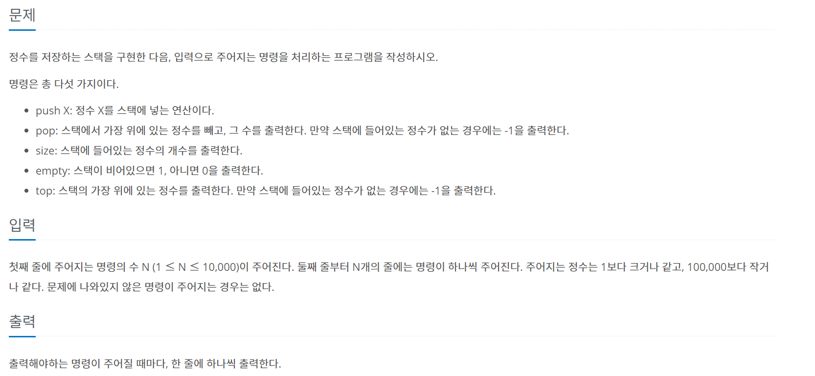 //스택에 들어있는 정수가 없는 경우 -1 출력