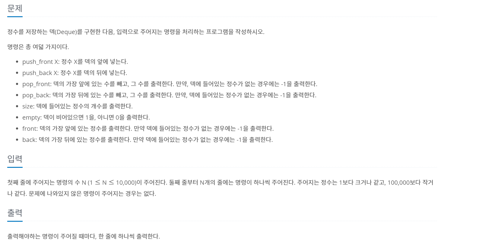 명령을 입력받는 동시에 deque명령을 실행해준다.