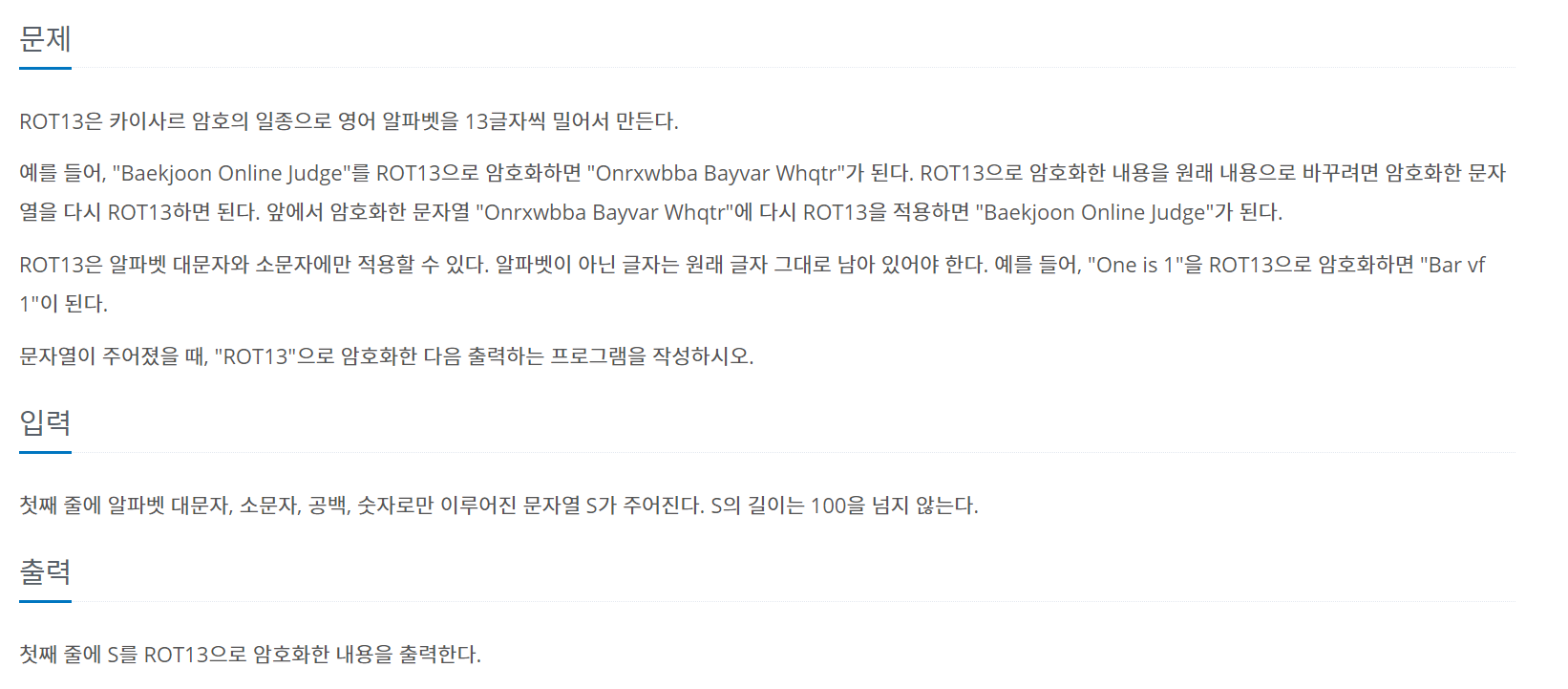 ASCII코드표를 참고하여 알파벳 범위를 넘었을 때만 잘 처리해주면 된다.