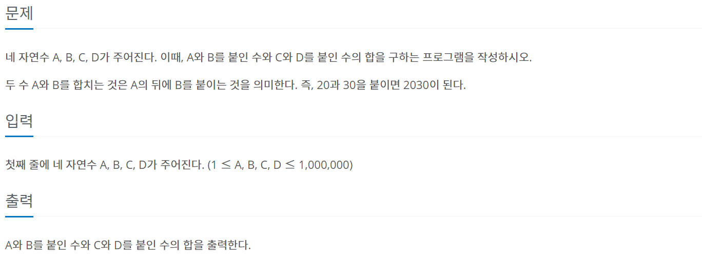첫째 줄에 네 자연수 A, B, C, D가 주어진다. (1 ≤ A, B, C, D ≤ 1,000,000)