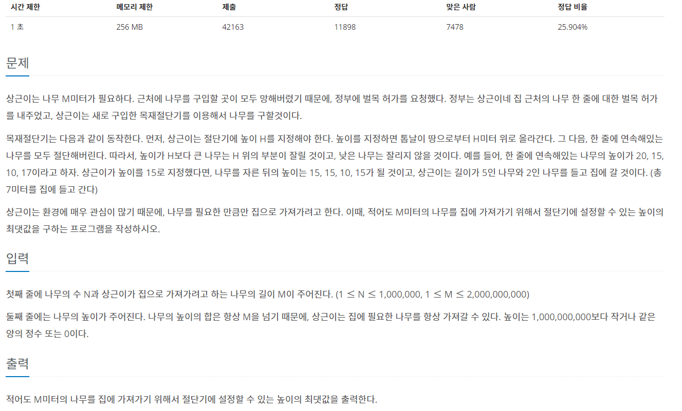 https://www.acmicpc.net/problem/2805
