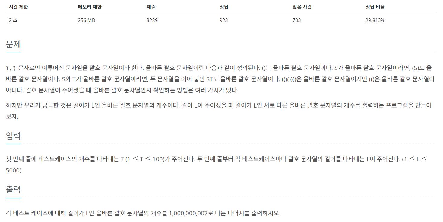 DP[x]: 길이 x인 올바른 괄호 문자열의 개수
