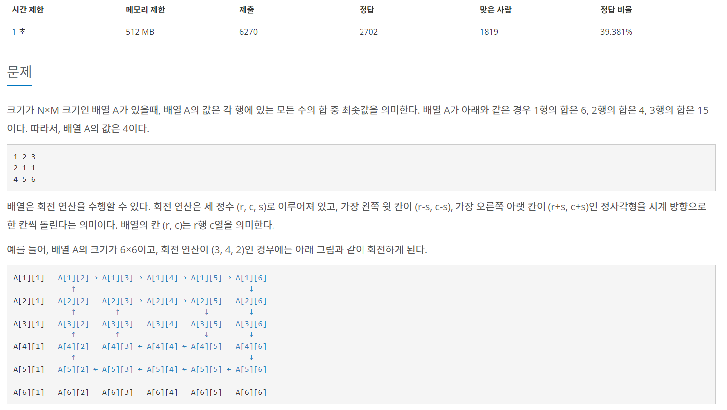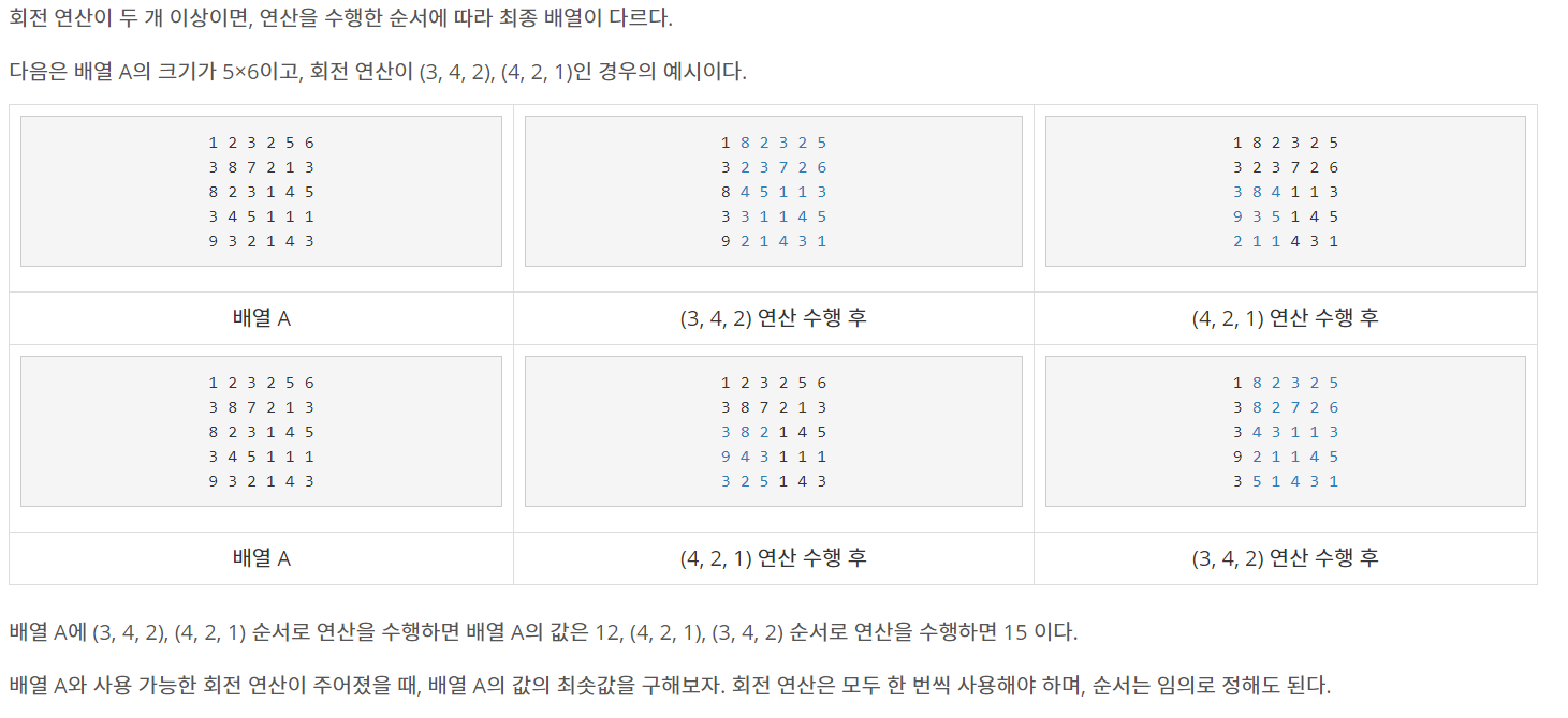 17406번: 배열 돌리기 4