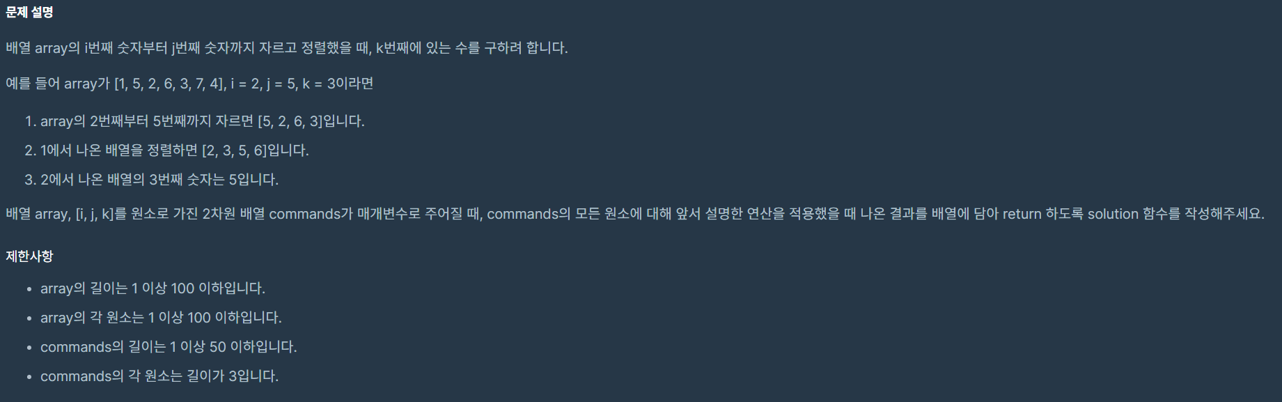 코딩테스트 연습 - K번째수