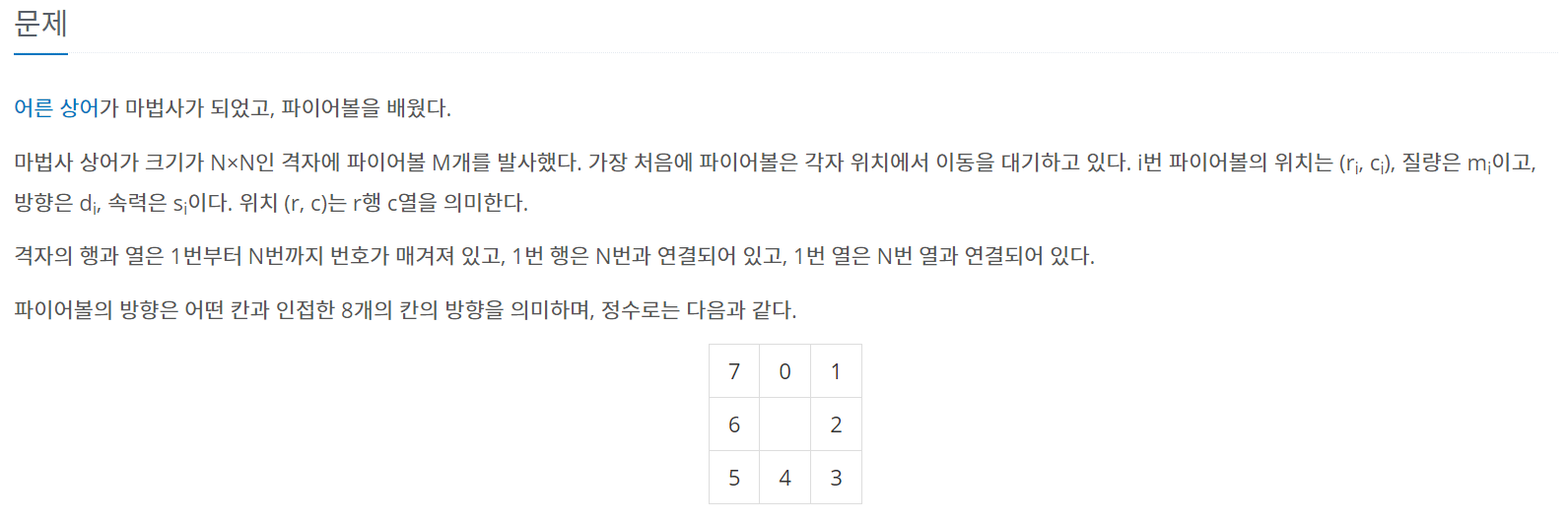 먼저 파이어볼의 질량, 속력, 방향을 저장하는 구조체 벡터 배열(vector<Ball>ball[51][51])에 파이어볼의 정보를 저장하는 것으로 시작하였다.
