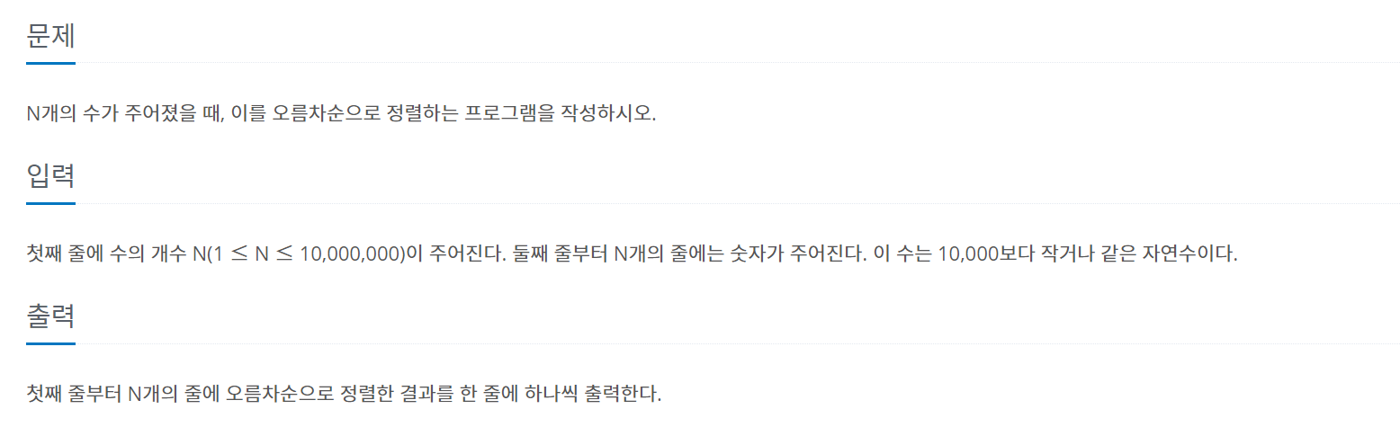 10989번: 수 정렬하기 3