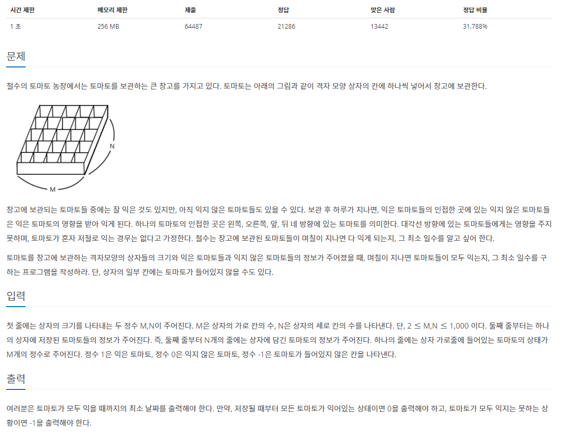 https://www.acmicpc.net/problem/7576